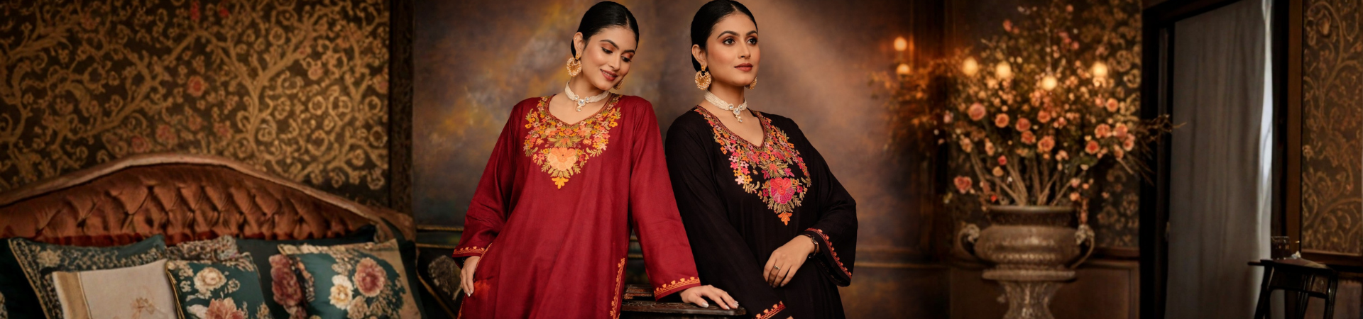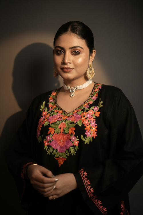 Indikanya Women’s Pashmina Acrylic Phiran | Free Size | Black | Warm & Soft Winter Wear