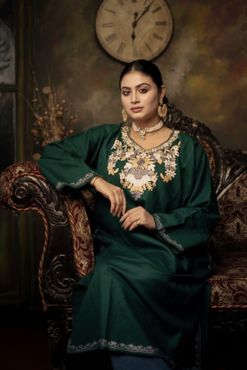 Indikanya Women’s Pashmina Acrylic phiran | Free Size | Green | Warm & Soft Winter Wear